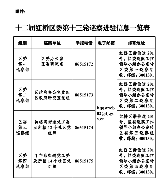 附件:十二届区委第十三轮巡察进驻信息一览表