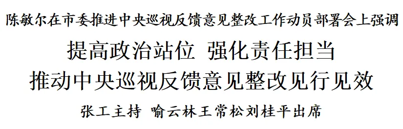 陈敏尔强调,推进整改落实,明责担责是关键。要加强政治领导、责任传导、工作督导,坚持系统施治、标本兼治,从严从实、动真碰硬,以最严要求、最硬作风、最好状态,确保巡视“后半篇文章”取得实实在在成效。强化责任担当,切实担负起市委主体责任和主要负责同志第一责任人责任,以身作则、带头整改,市领导同志履行“一岗双责”,尽职尽责落实好分管领域整改任务,各级各部门各就各位、各负其责,凝聚形成整改合力。优化工作机制,具体化、清单化、行动化推动整改,倒排工期、对账销号,强化督办和跟踪问效,自觉接受群众监督,对整改不力、敷衍整改、虚假整改的抓住典型、严肃问责。砥砺能力作风,进一步提高政治判断力、政治领悟力、政治执行力,增强攻坚克难的本领,弘扬求真务实的作风,干字当头、实字托底,绵绵用力、久久为功,以钉钉子精神清除各类顽瘴痼疾。深化成果运用,把巡视整改融入日常工作、融入深化改革、融入全面从严治党、融入班子队伍建设,把经济社会发展方面整改措施纳入我市“十五五”规划纲要,用改革的思路、办法、举措推动整改、破解难题,做到以巡促改、以巡促建、以巡促治。